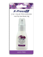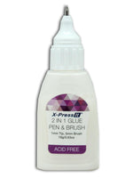 X-Press It 2 in 1 Glue Pen and Brush is a versatile adhesive tool designed for precision and flexibility in various crafting projects. Dual Applicators: Features a 1mm fine-point tip for detailed work and a 5mm brush for broader applications.​ · 1mm tip, 5mm brush · Non toxic · Clear drying · For permanent bond, use when glue is wet · For temporary bond, wait until the glue has dried