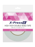 X-Press It High Tack Double Sided Tape is perfect for use in general mounting or art and craft applications. The tape contains extra strong adhesive, allowing you to easily stick photos inside scrapbooks, mount posters to other surfaces and complete other papercraft projects. · This tape is high tack with extra strong adhesive, allowing you to mount light metal, glass, wood, paper, plastic and fabric · The roll contains 25m of 3mm wide tape · It has a 76mm core size, allowing you to use it in appropriate dispensers · Conveniently tear this tape by hand · Easy to peel liner · Acid free and solvent free · The tape is doublesided so cannot be seen once applied and leaves a clean result · It is also heat resistant, ensuring your items stay put even in warmer environments · Available in 3mm, 6mm and 12mm widths