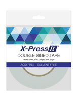 X-Press It Double Sided Tape is ideal for papercraft, cardmaking, scrapbooking, mounting and general craft applications. · Width: 3mm · Length: 25m · Acid & solvent free · Heat resistant · Performs well in all climates including warmer environments · Easy to tear and apply by hand · Easy peel release liner · Core Diameter: 75mm