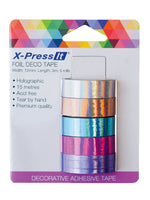 X-Press It Foil Deco Tape includes 5 assorted holographic colours of 12mm foil tape. They're ideal for adding a glistening accent to all your projects. This tape is also great for decorating, repurposing and craft applications.