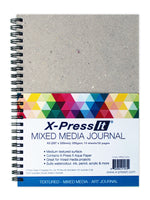 Mixed media Journal contains 15 sheets of heavy weight 300gsm multi media paper with a medium texture. The surface is ideal for use with Water-colours, ink, pencil, acrylic and more.